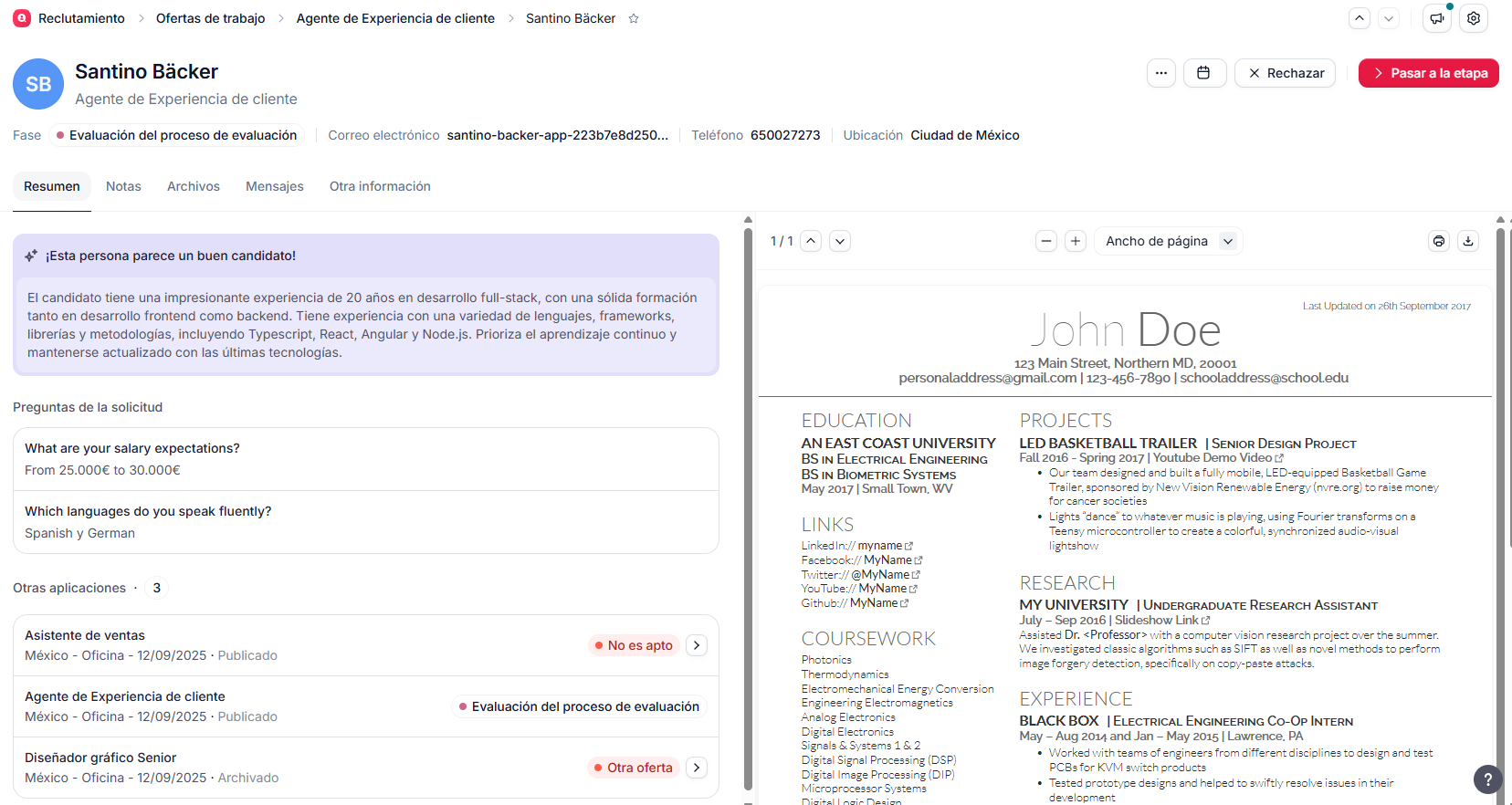 Esto evita la frustración de no saber en qué punto se encuentran y refuerza la percepción de la marca empleadora como ágil y cercana.